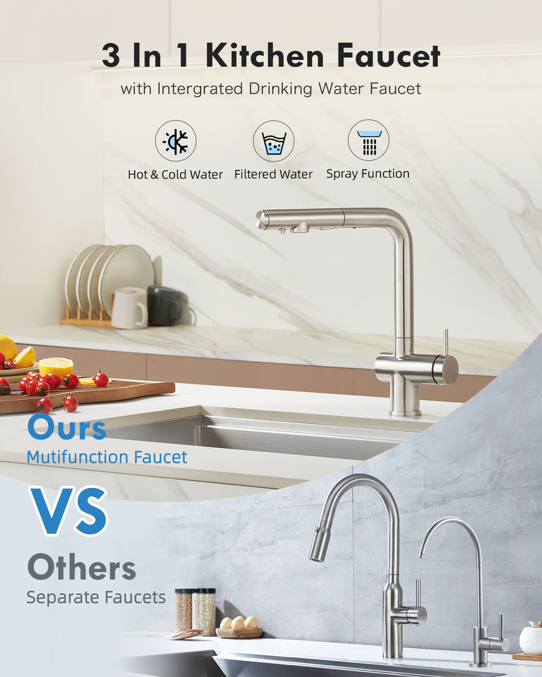 Robinet monocommande moderne en acier inoxydable 304, direct usine, pour évier de cuisine, avec cartouche céramique pour eau potable, idéal pour hôtels