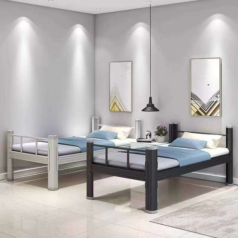 Lit moderne monocouche à cadre en fer profilé en métal épais pour le personnel étudiant location de lit dortoir pour appartement et séjour chez l'habitant