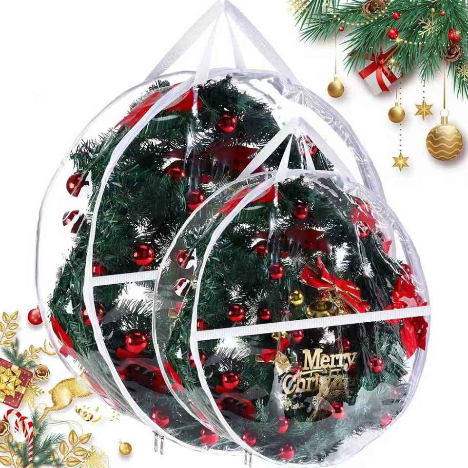 Sac de rangement de guirlande de Noël transfrontalière moderne à un seul niveau en PVC transparent sous le lit stockage de cadeaux de vacances