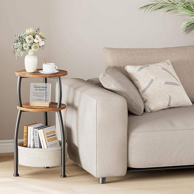 Table d'appoint moderne compacte pour petits espaces avec panier de rangement, table d'appoint à 3 niveaux, table de chevet, table d'angle de canapé pour salon