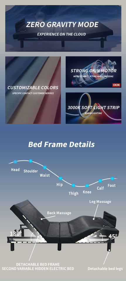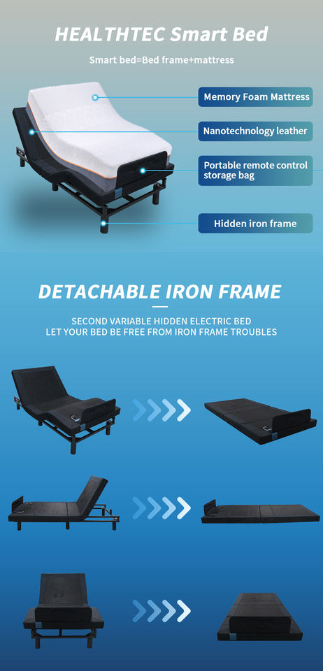 Lit intelligent moderne avec télécommande filaire, mécanisme de lit électrique réglable à vibrations sans espace libre pour les meubles de chambre à coucher