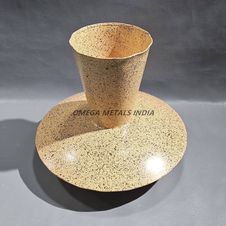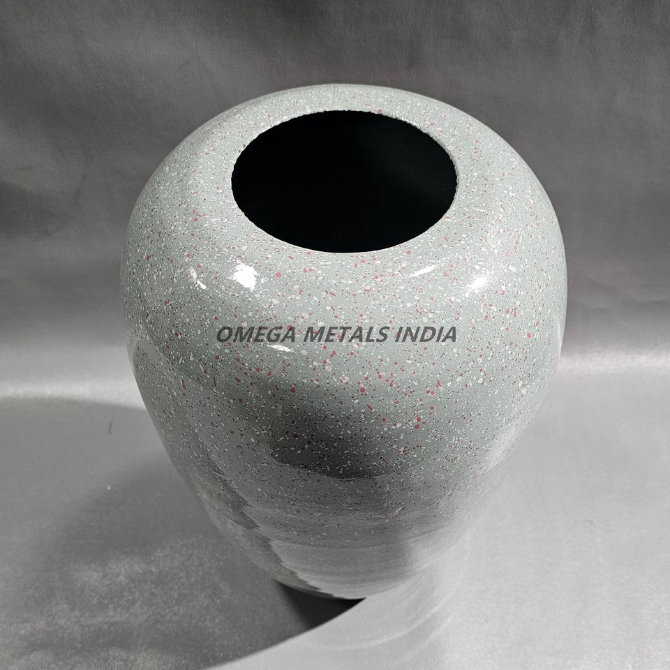 Vase moderne en métal blanc incurvé lisse avec texture mouchetée unique et finition de haute qualité pour une décoration intérieure tendance