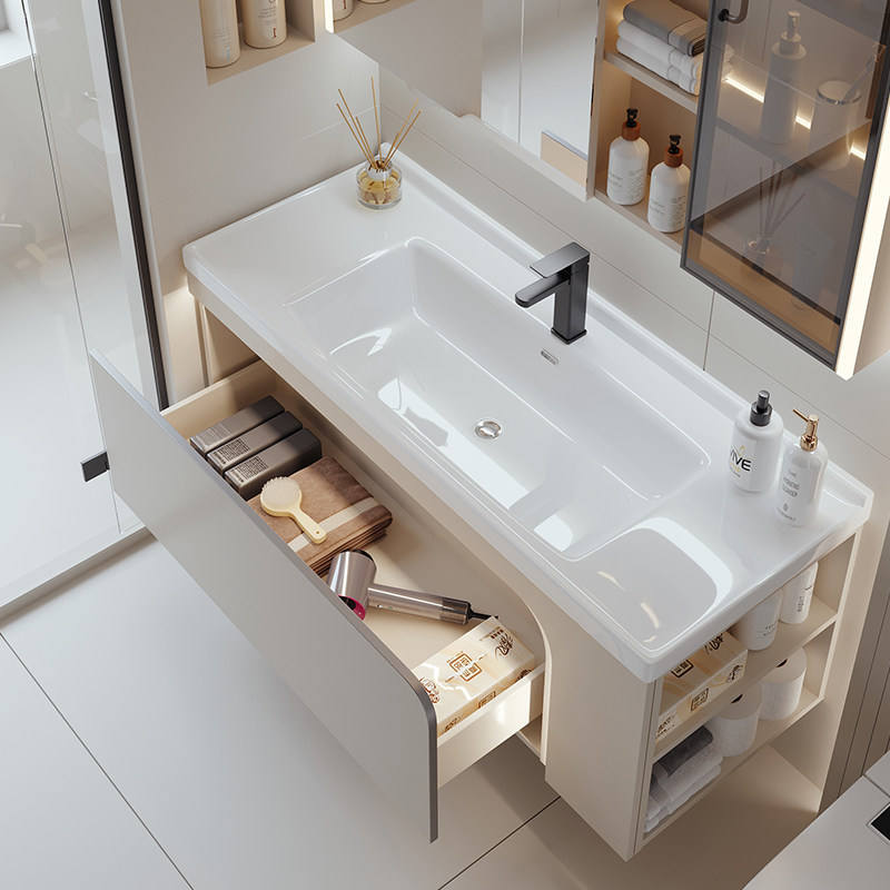 Lavabo carré encastré moderne en surface solide pour meuble de salle de bain