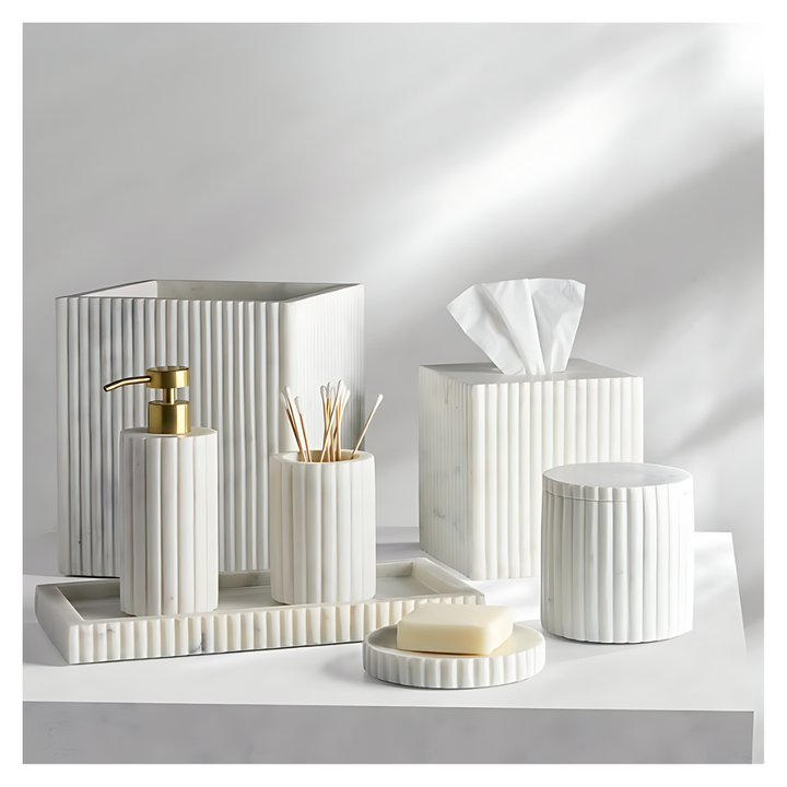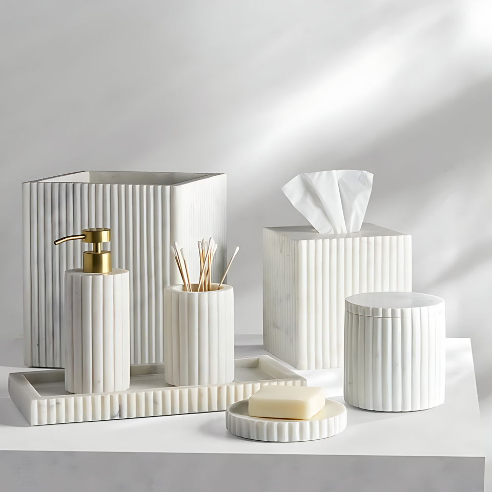 Ensemble d'accessoires de salle de bain en marbre blanc de qualité supérieure Fabricant direct en gros Fournisseur en vrac Conceptions personnalisables Prix d'usine