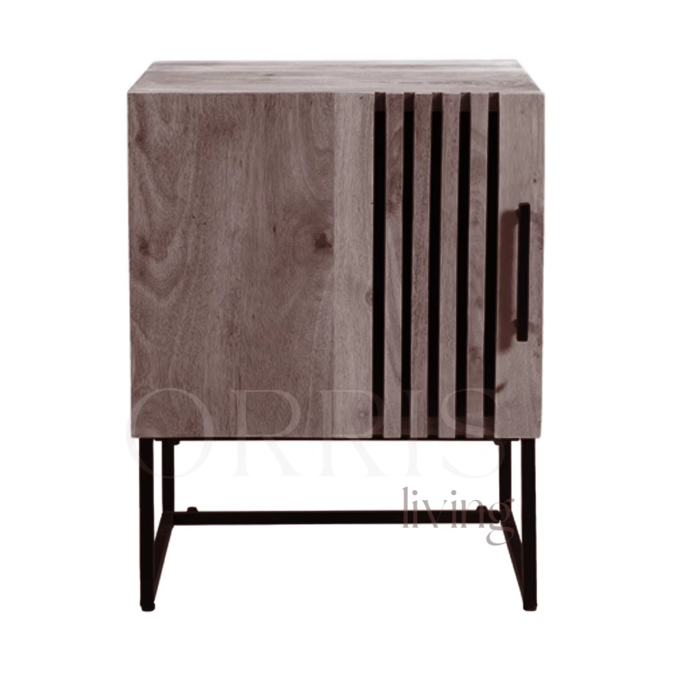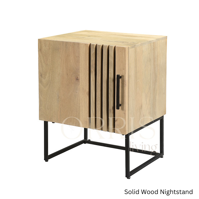 Chevet moderne en bois massif avec rangement - Base en fer durable, finition naturelle faite à la main, couleur personnalisable, bois de sheesham, chêne, chambre à coucher