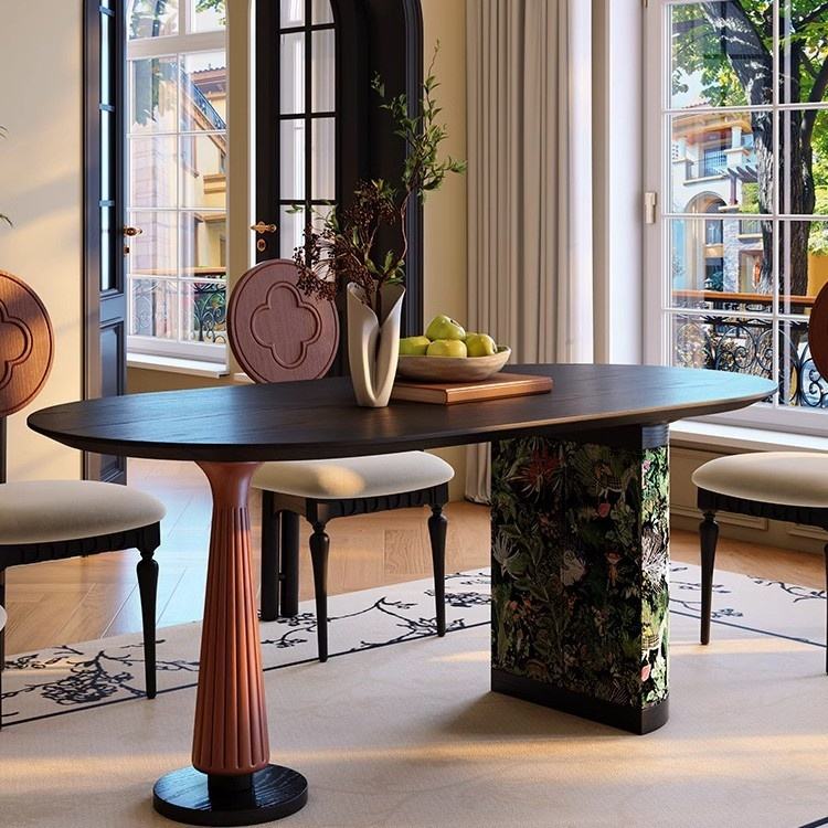 Ensemble de table et de chaises de salle à manger ovales en bois massif moderne pour petit appartement, salon, meubles de maison