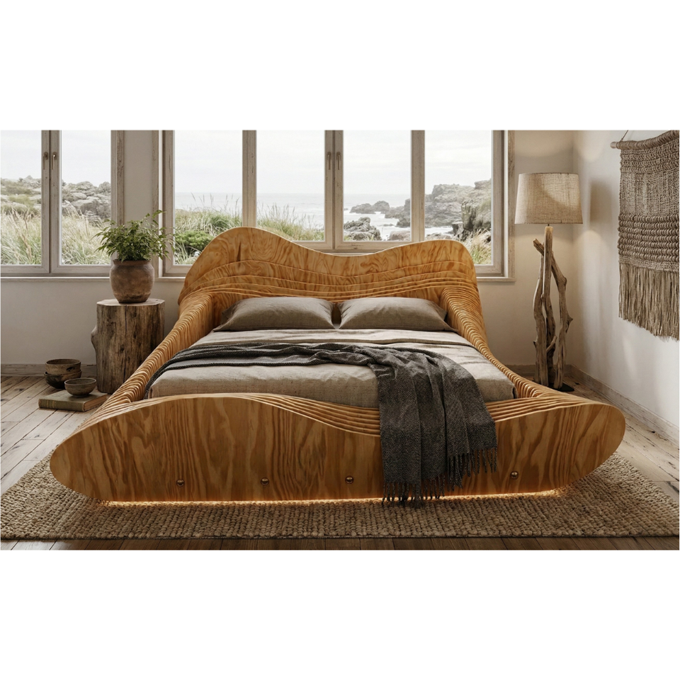 Lit superposé moderne en bois massif, design paramétrique ondulé, tailles Queen et King
