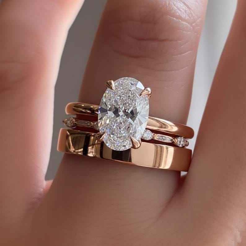 Bague trois rangs avec diamant de laboratoire taille ovale