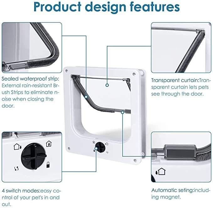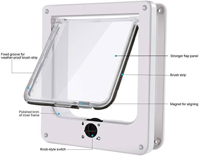 Porte-fenêtre moderne carrée à 4 voies avec verrouillage, à ouverture spirale, à rabat intérieur en plastique, pour chiens et chats, pour l'accès aux animaux de compagnie