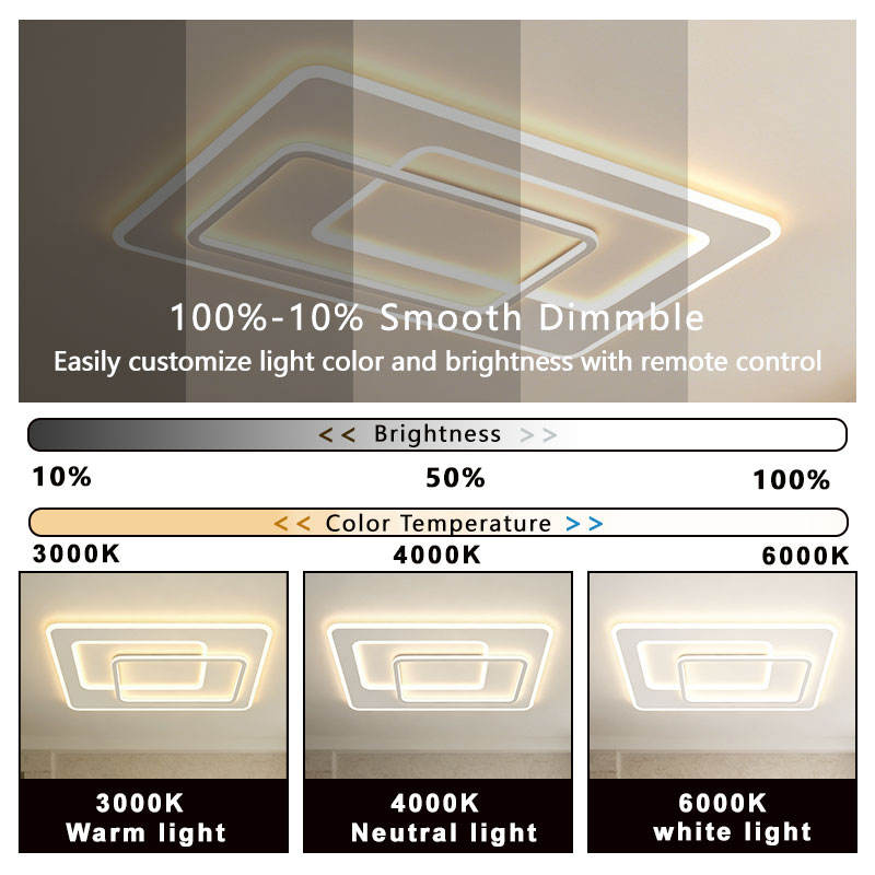 Plafonnier LED carré moderne avec télécommande, couvercle en acrylique, base en fer, IP44, 96W, CRI élevé 80, pour salle à manger, salon, chambre, maison