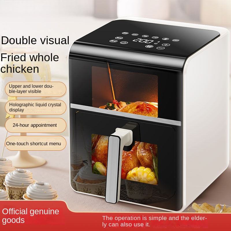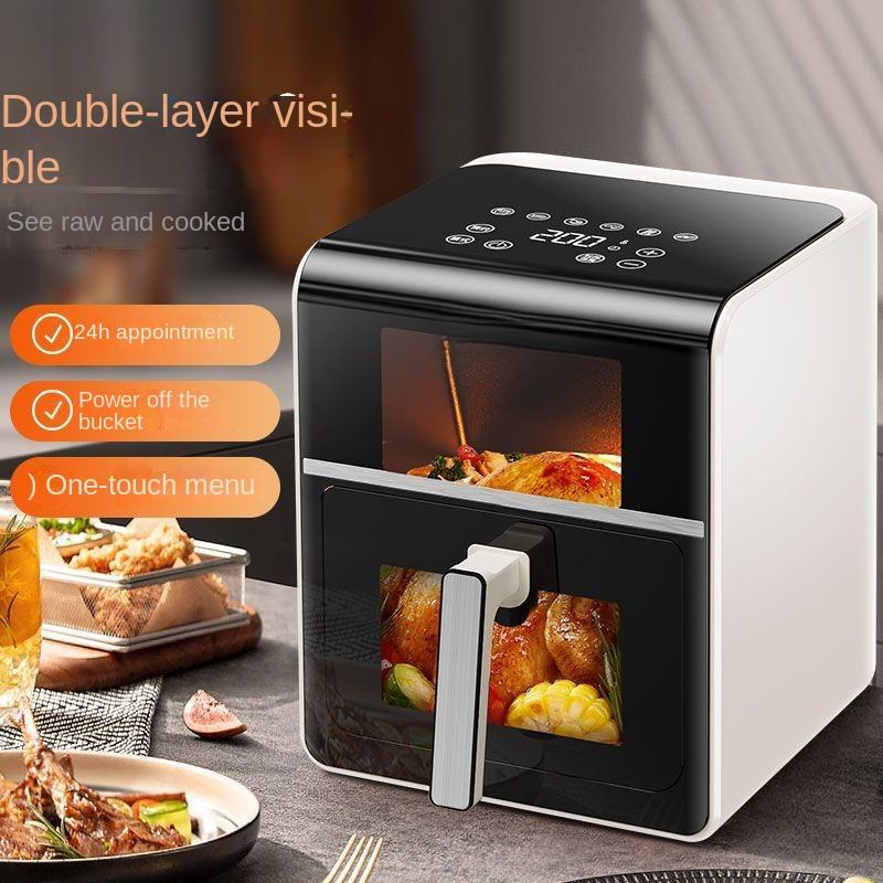 Friteuse à air multifonctionnelle carrée moderne sans huile Chauffage halogène Fenêtre visible Fonctionnement allemand pour usage domestique