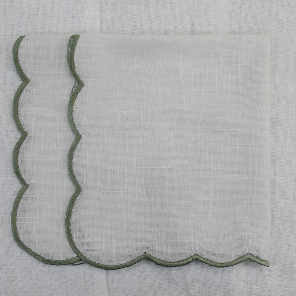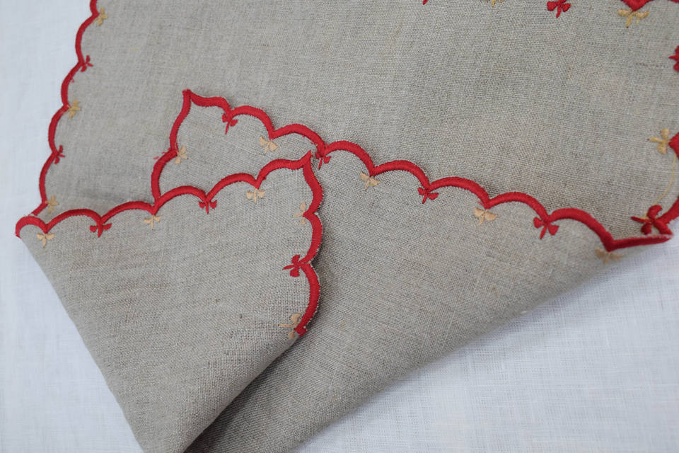 Serviette en lin à bord festonné, serviette brodée