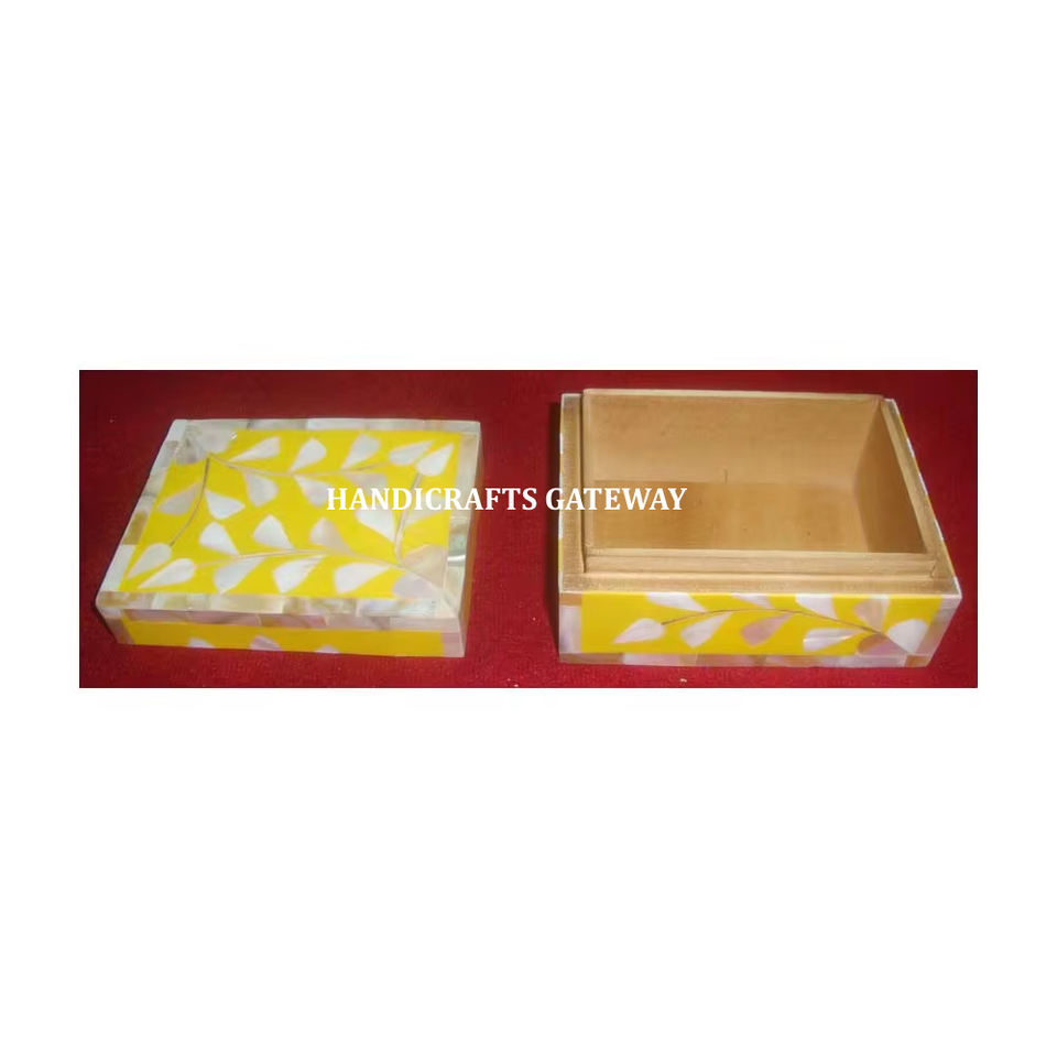 Boîte à bijoux durable en nacre de forme carrée moderne en bois naturel incrusté pour cadeau d'entreprise et décoration de la maison