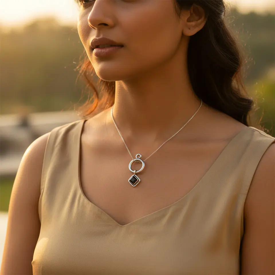 "Modern Square Stone Women's 925 Silver Pendant Fashion Jewelry"