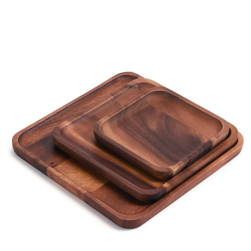 Nom du produit:Plateaux de service carrés en bois l Ensemble de 3
