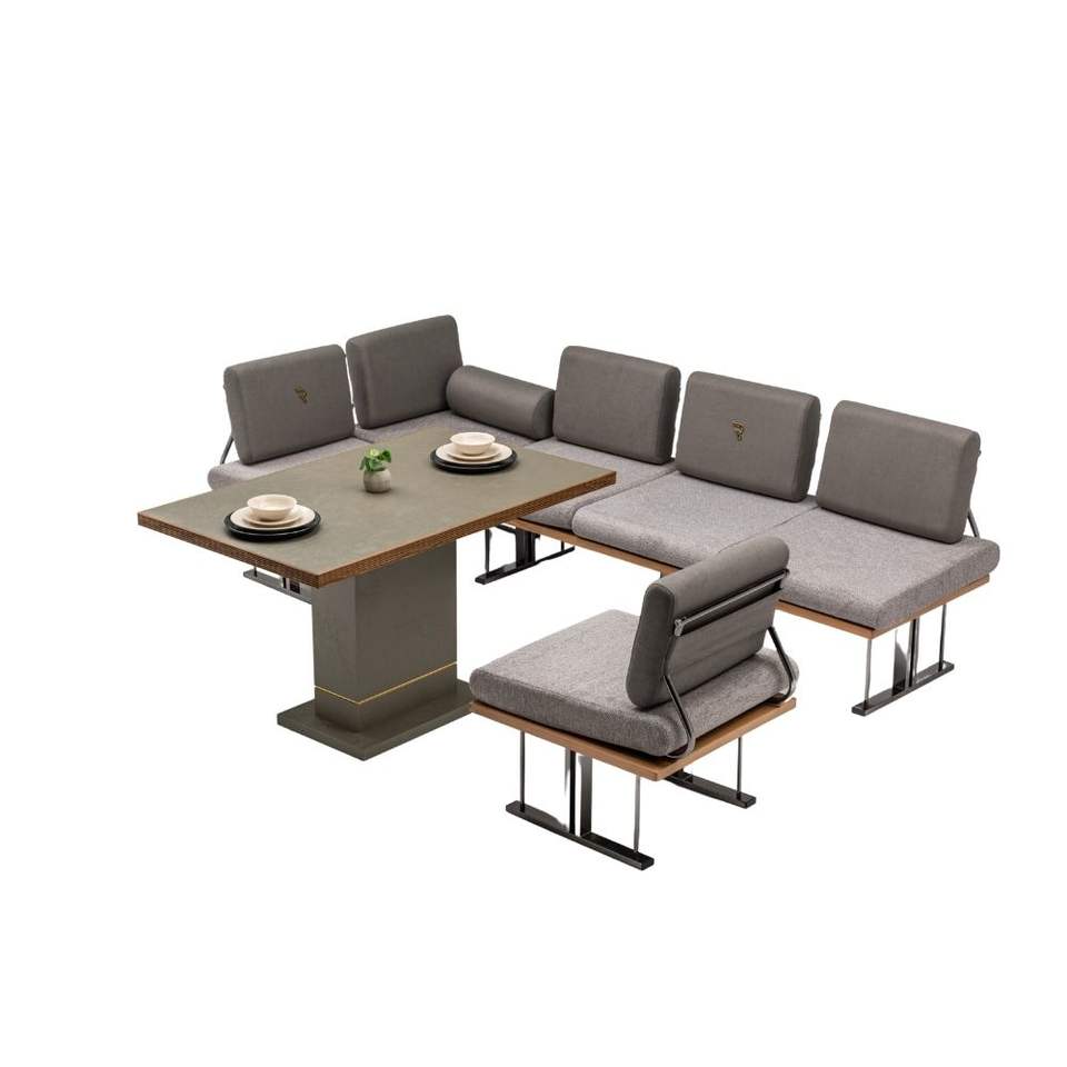 Ensemble de canapés de jardin modernes en acier inoxydable 6 places, résistant aux intempéries, mobilier de salle à manger extérieur pour villa
