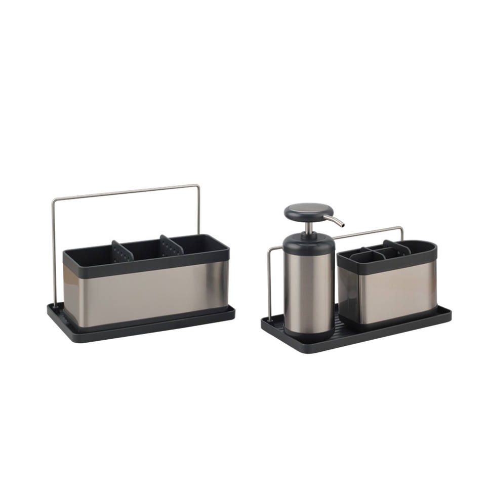Organisateur d'évier de cuisine moderne en acier inoxydable avec distributeur de savon et support pour éponge