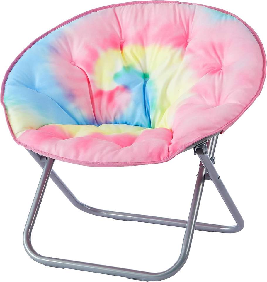 Modern Stainless Steel Saucer Chair Rainbow Tie-Dye for Outdoor and Living Room Garden Furniture