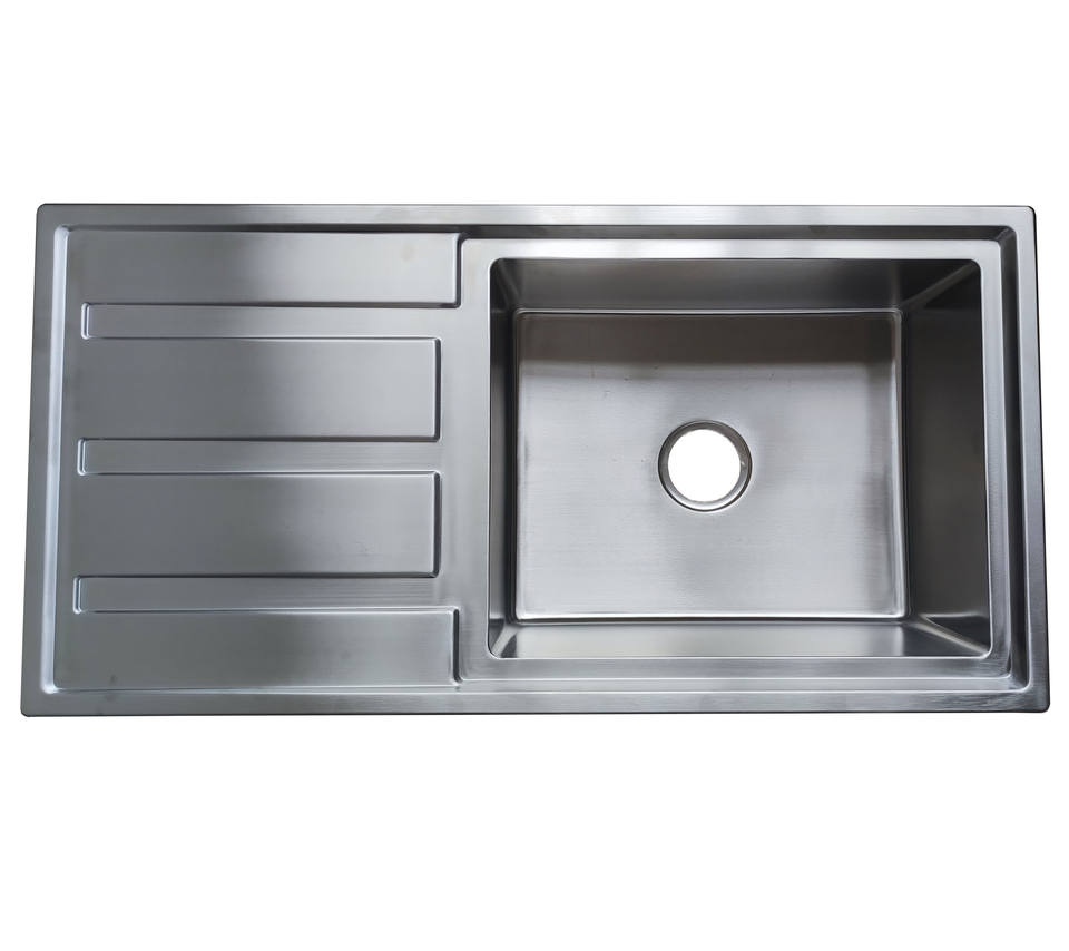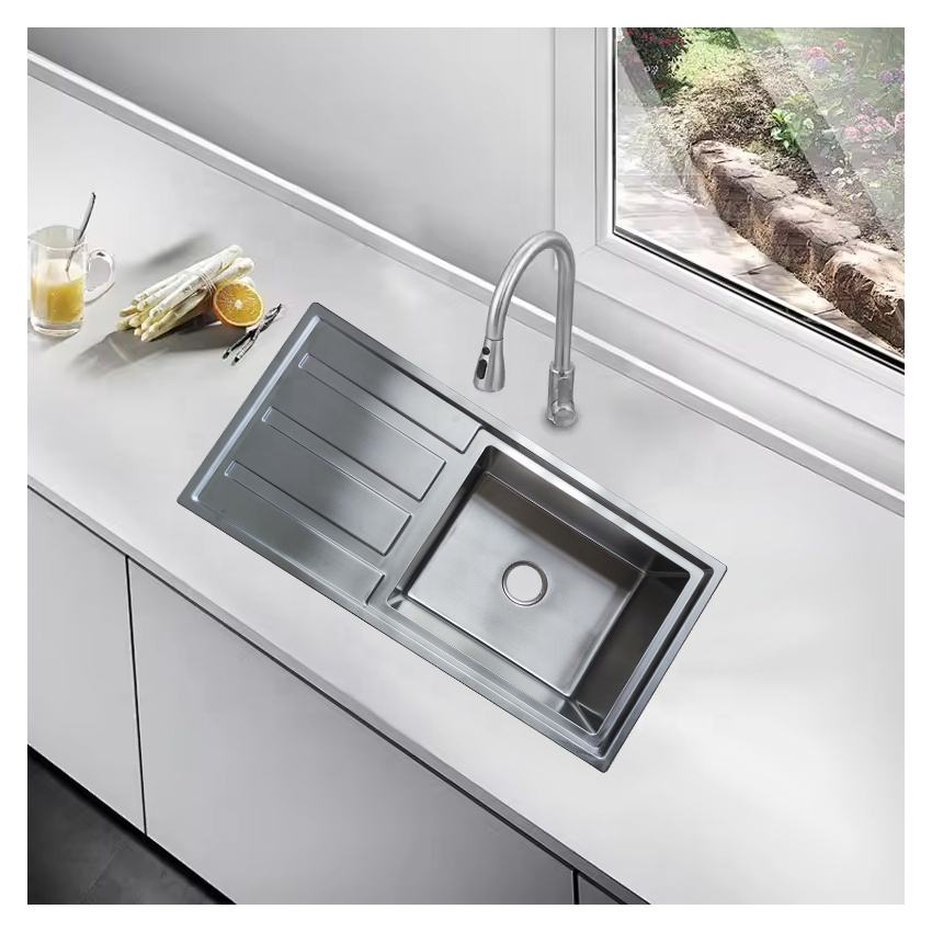 Évier de cuisine moderne en acier inoxydable à cuve unique, style ferme, avec égouttoir et brosse, pour grandes cuisines