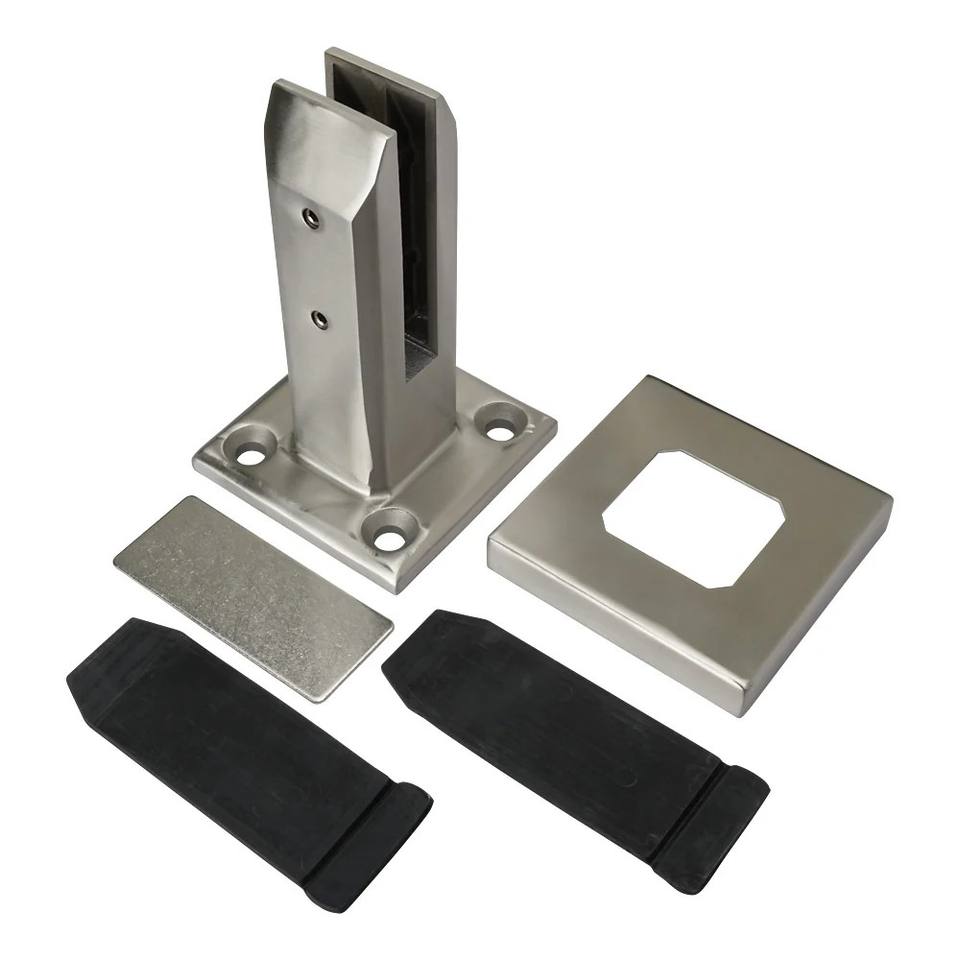Modern Stainless Steel Square Clamp Glass Spigots for Villa Mall Hotel Outdoor Balcony Stair Fence Floor Mounting Brackets