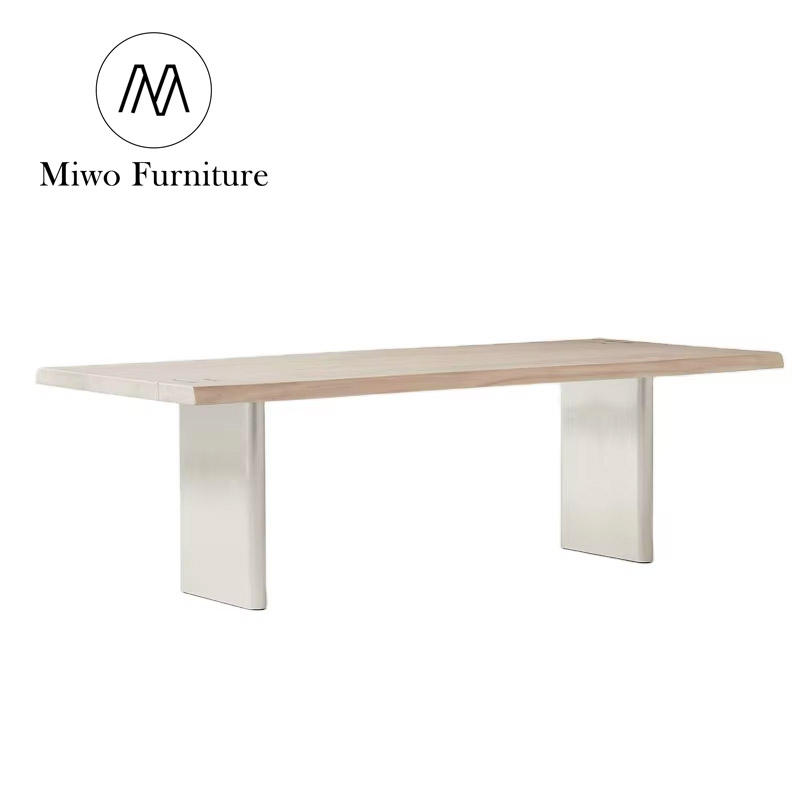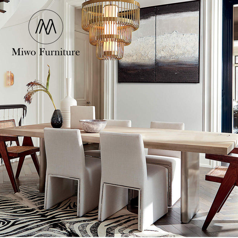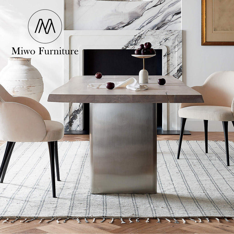 Restaurant moderne à pied de table en acier inoxydable adapté à de nombreuses personnes pour dîner en bois massif naturel table rectangulaire à grande assiette