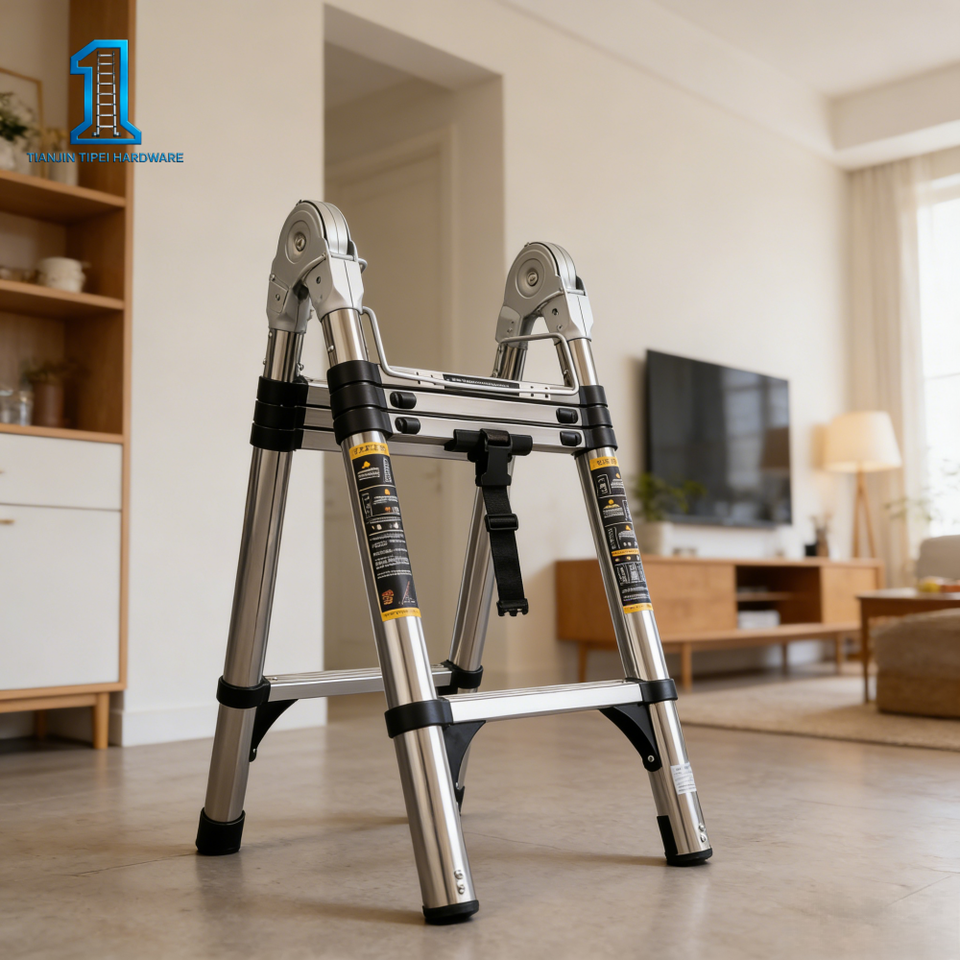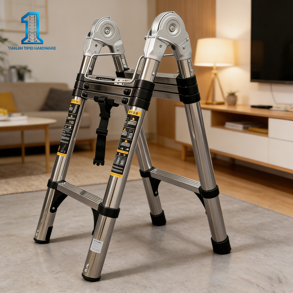 Échelle télescopique moderne en acier inoxydable de 1,7 mètre, antidérapante et pliable, pour usage domestique et professionnel, aide à l'escalade