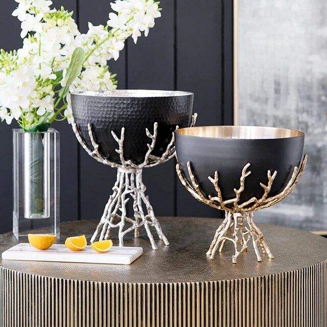 Bols modernes en acier et laiton avec feuille et fleur marteau texture bol à fruits bol à noix pour comptoirs et dessus de table pour la maison inde