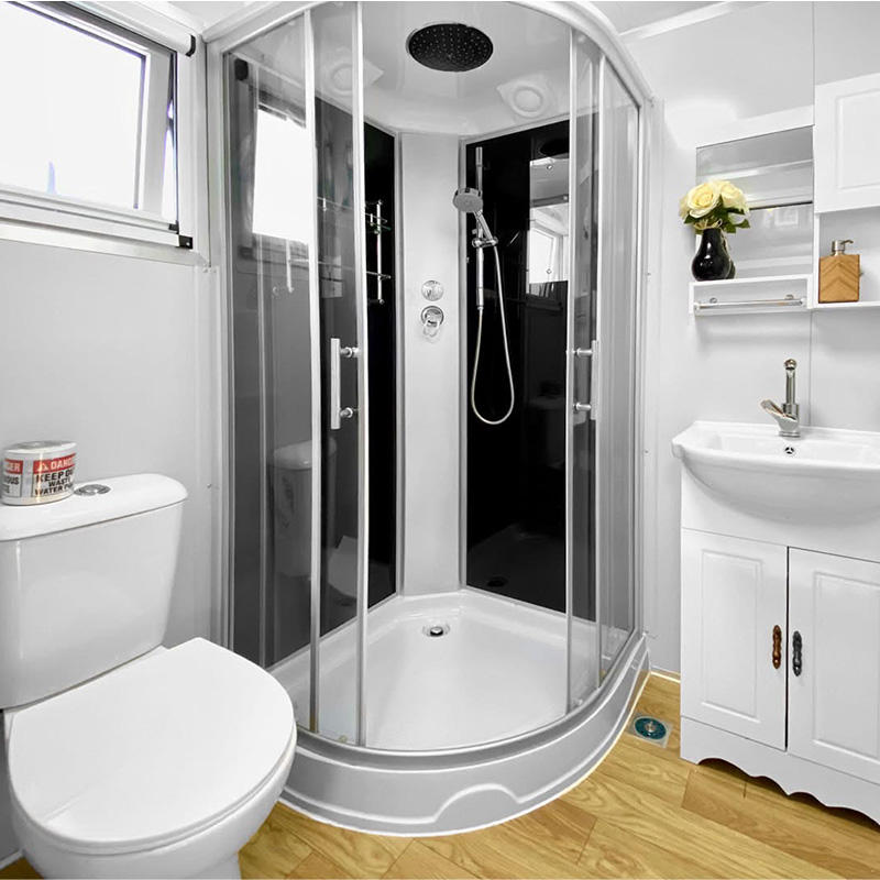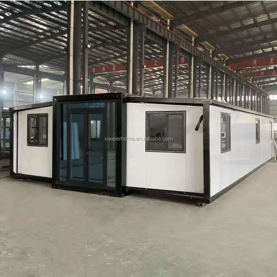 Maison conteneur préfabriquée en acier moderne, extensible, 20 pieds/40 pieds, mobile, avec salle de bain complète, cuisine, étanche, alimentée à l'énergie solaire