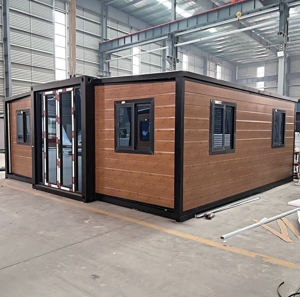 Maison mobile extensible en structure acier moderne avec salon, tailles 40 pieds et 20 pieds, 2 à 4 chambres