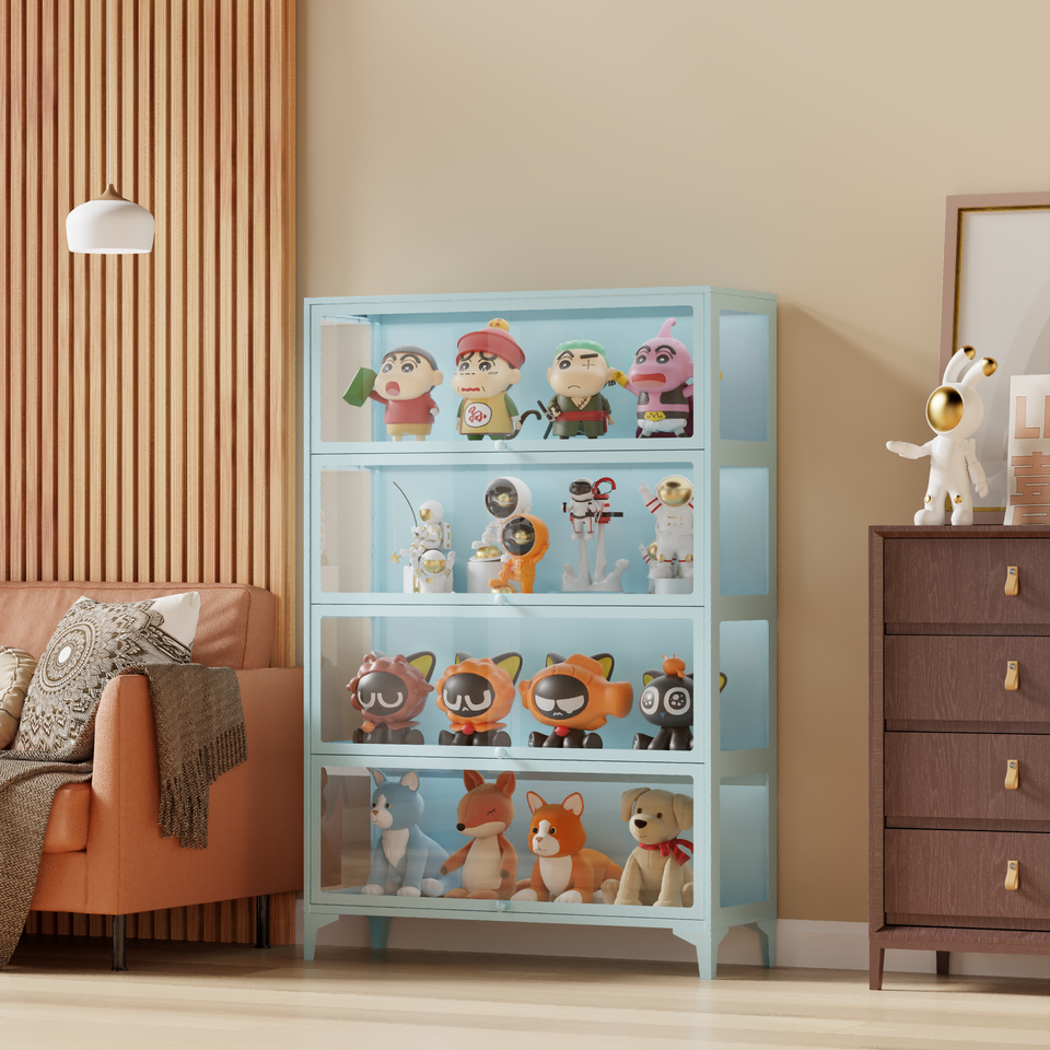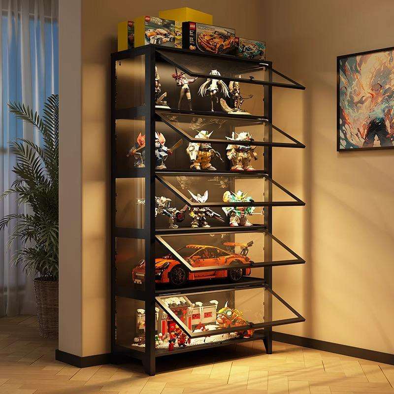 Vitrine moderne en acier et en verre avec éclairage LED, 4 tiroirs et 4 étagères pour le salon, la chambre à coucher, l'hôtel, l'appartement, décoration