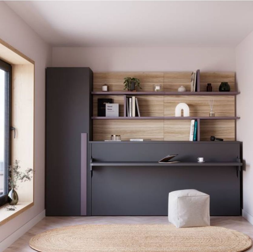 Ensemble de meubles de chambre à coucher moderne avec lit mural intégré, lit Murphy avec bureau et étagère pour le bureau