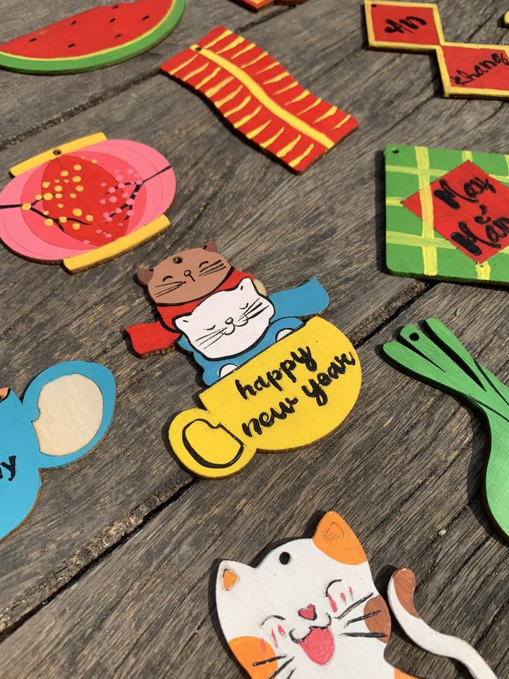 Style moderne 2023 nouvel an arbre jouet coloré décoration en bois pour les maisons heureuses bois poli artisanat boîtes en bois signes muraux