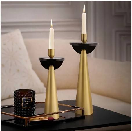 Bougeoir décoratif de mariage en aluminium à 3 bras de style moderne, support de pilier antique en cuivre fait à la main avec pierre pour Noël