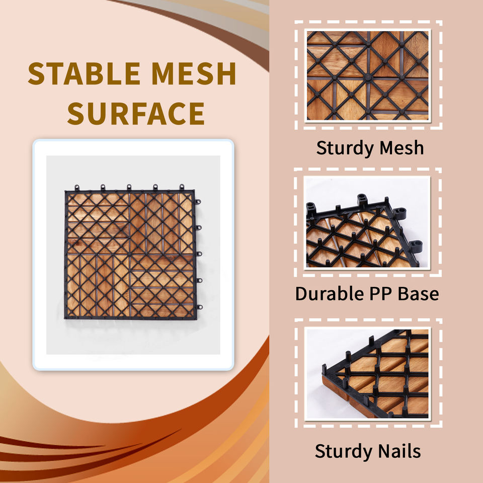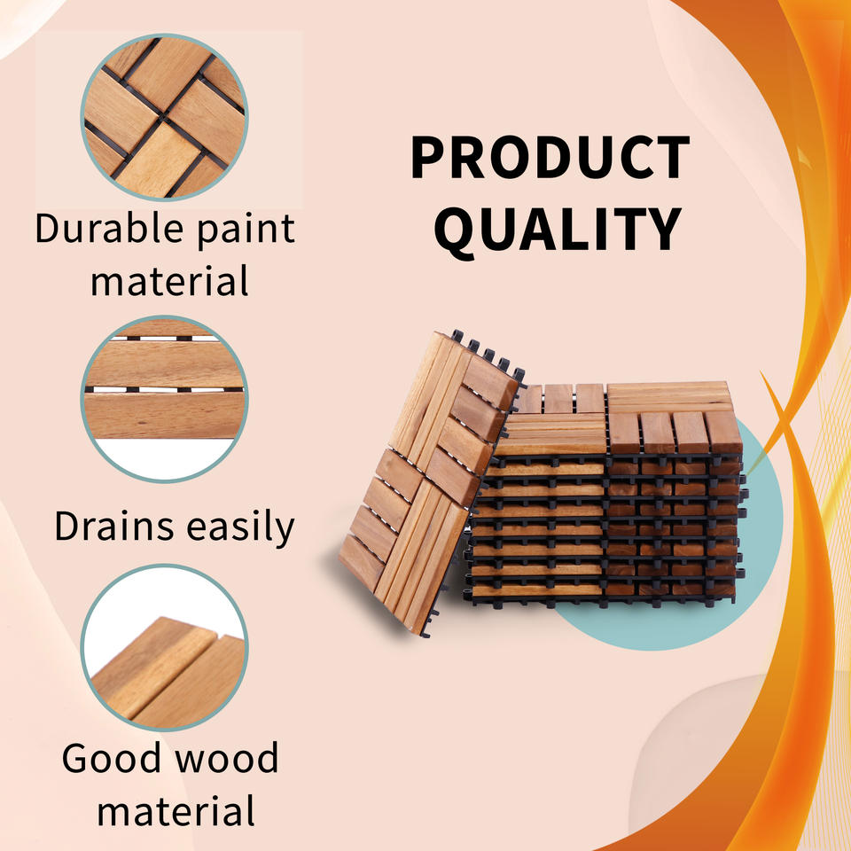 Carreaux de terrasse à emboîtement en bois d'acacia de style moderne résistants aux intempéries pour les applications de bordure de terrasse, de balcon, de jardin et de piscine