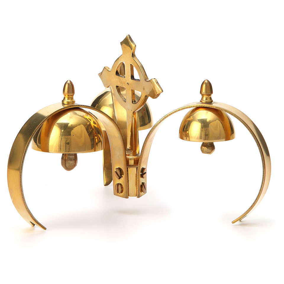 Cloche d'autel de style moderne 3 carillons avec croix en laiton pour église, temple religieux et spirituel, décoration intérieure