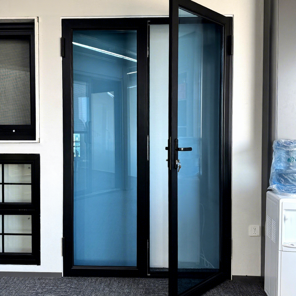 Portes coulissantes et battantes intérieures en verre à cadre en aluminium de style moderne, porte battante extérieure en verre insonorisée