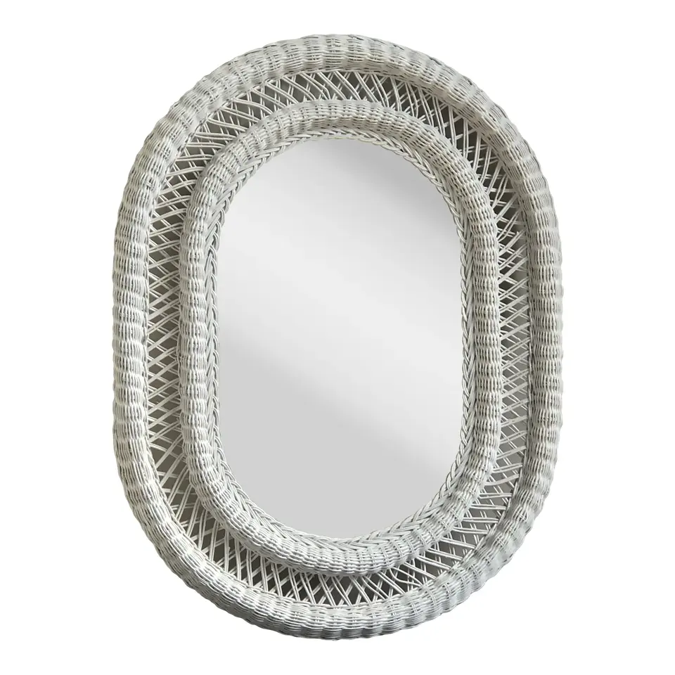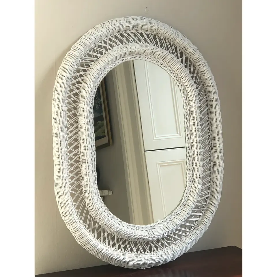 Miroir mural en osier de rotin naturel antique de style moderne nouvelle décoration décorative à la main pour salle de bain