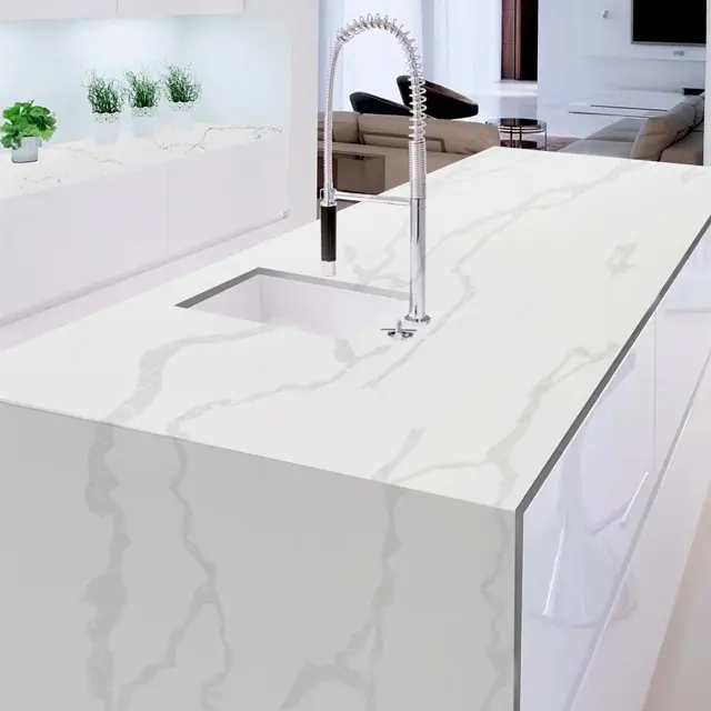 Nom du produit:Dalle de pierre de quartz blanc artificiel Calacatta