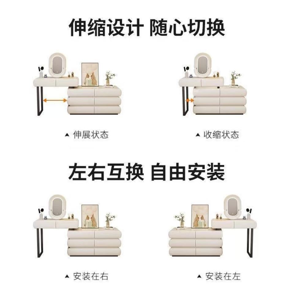Meuble de chambre à coucher de style moderne Lumière LED Couleur blanche Optionnelle Commode de rangement Coiffeuse Table de maquillage avec LED