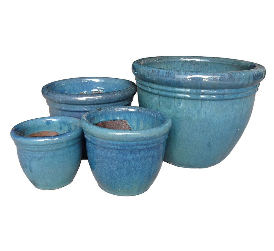 Pot de fleur en céramique émaillée bleue de style moderne pour l'extérieur Jardinière en argile de haute qualité avec décoration de jardin design pour usage domestique