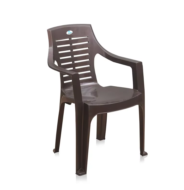 Chaise de salle à manger en plastique marron de style moderne avec accoudoirs Fauteuil d'extérieur confortable pour le salon, la cuisine, l'école et la chambre à coucher