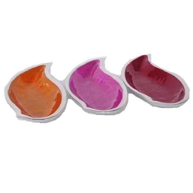 Bol en forme de feuille en aluminium moulé de style moderne avec plateau de service imprimé en émail sans danger pour les aliments et bol en métal disponible