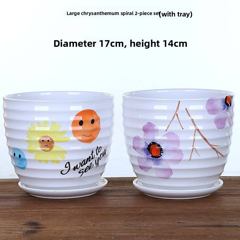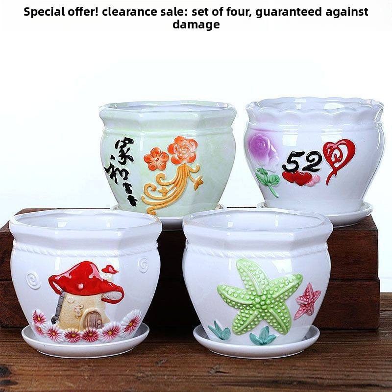 Pots de fleurs et plateaux en céramique de style moderne dégagement spécial grand pot succulent orchidée radis vert pour usage domestique