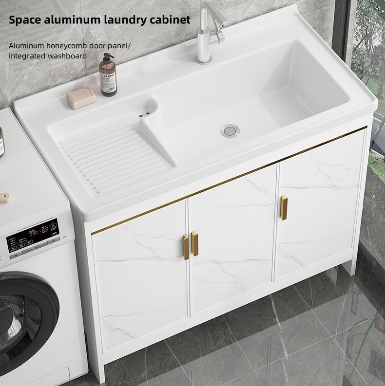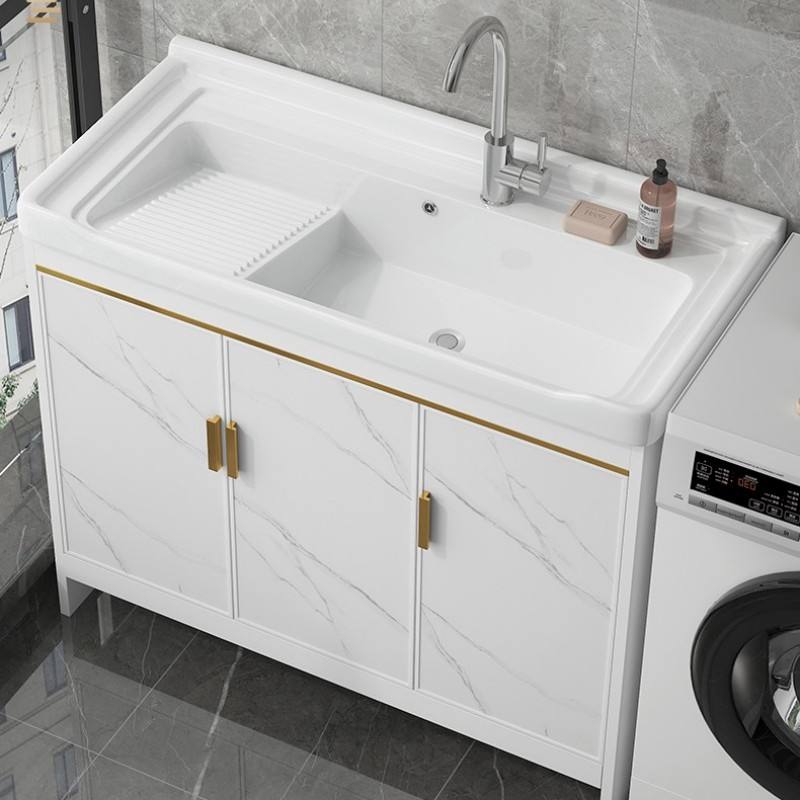 Lavabo en céramique de style moderne avec planche à laver en aluminium Lavabo intégré extérieur pour hôtels et salles de bains