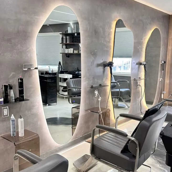 Modern Style Customize African Map Mirror Hairdressing Irregular Shape Saloon Hair Styling Stations Wall Mirror for Barber Shop
