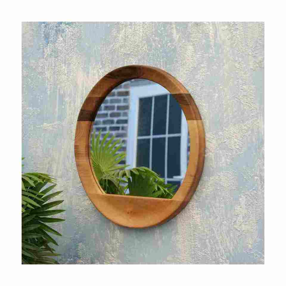 Miroir de style moderne mignon avec cadre rond en bois fabriqué à la main en Inde avec un design personnalisé de qualité d'exportation pour la décoration murale