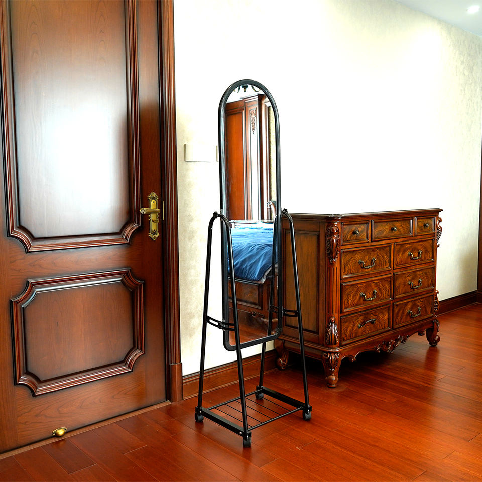 Miroir sur pied au design moderne et minimaliste avec cadre en aluminium et fonction de rangement, miroir de dressing mobile