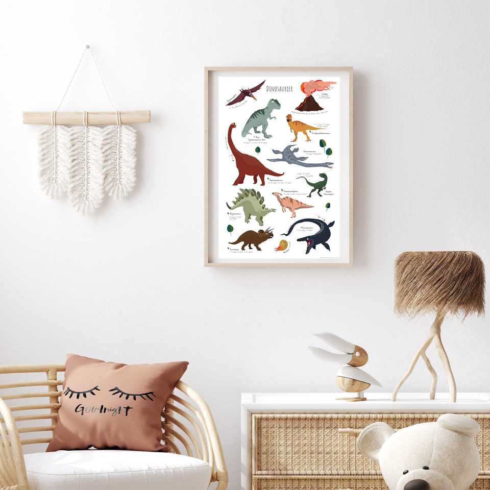 Affiche éducative sur les dinosaures de style moderne, 61 x 91,5 cm, décoration murale