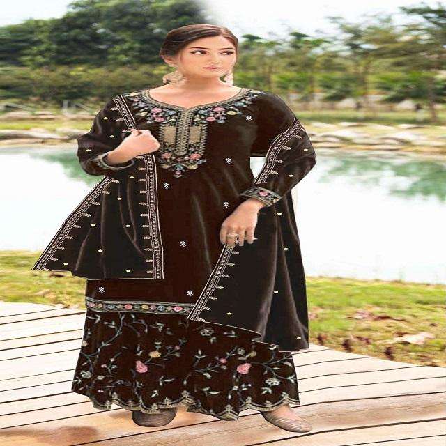 Style Moderne Dressing Déguisement Pur Velours Salwar Suit & Dupatta Avec Broderie Séquence Khatli Travail Fabricant De L'Inde