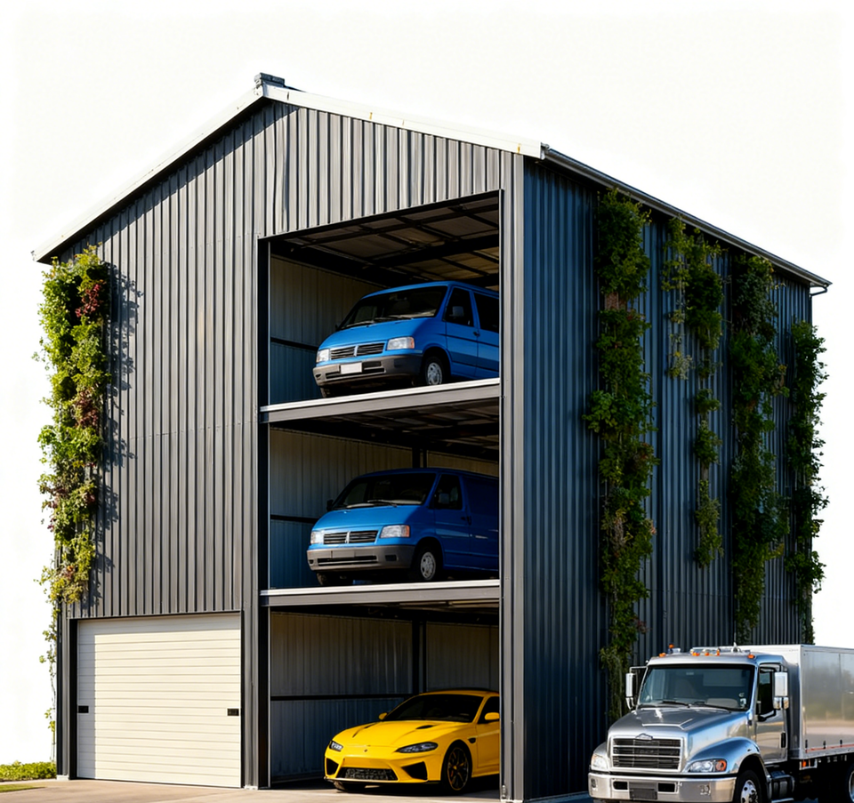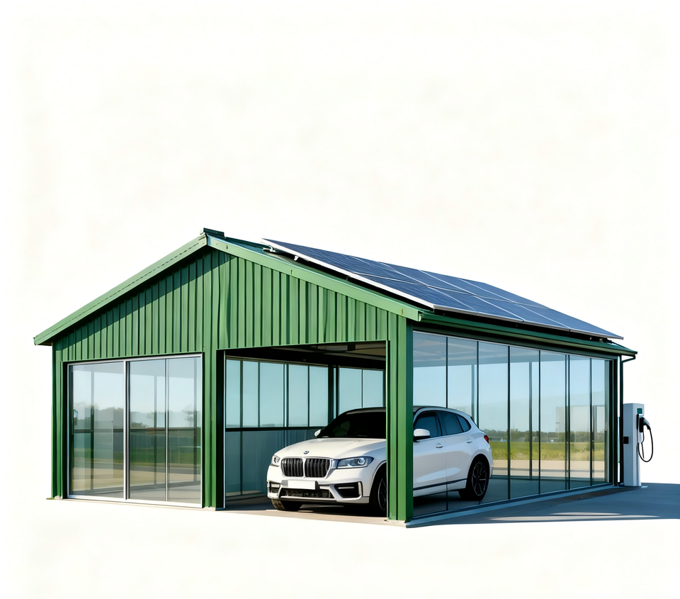 Bâtiment préfabriqué en acier léger de style moderne, prix d'usine, garage, abri de voiture, entrepôt